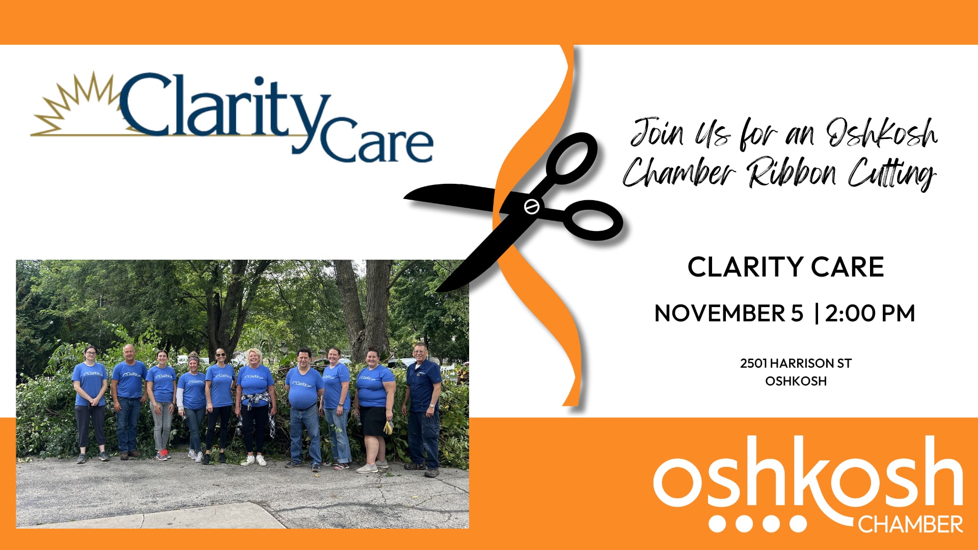 Come celebrate the opening of Clarity Care's new CBRF Group Home with an Oshkosh Chamber Ribbon Cutting.Images